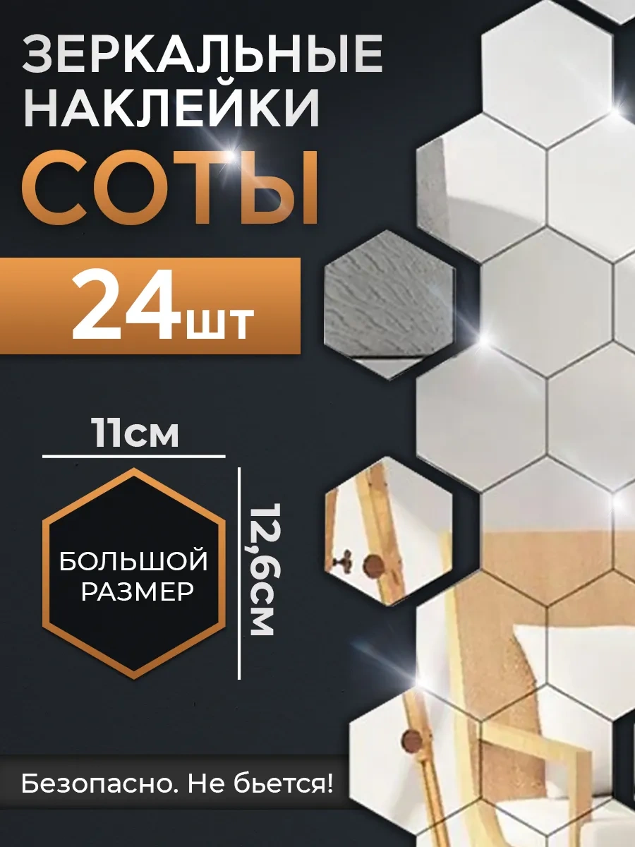 Conflate Duvar İçin Ayna Yapıştırma Süsleri Petek 11x12 Cm 24 Adet 307048392 Gümüş