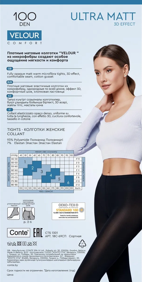Conte Elegant Velour 100 Isıtmalı Taytlar 9025720 Siyah