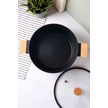 Cookwood Black İndüksiyon Tabanlı Ahşap Kulplu Kapaklı Seramik Derin Tencere 24 Cm Sıyah Siyah