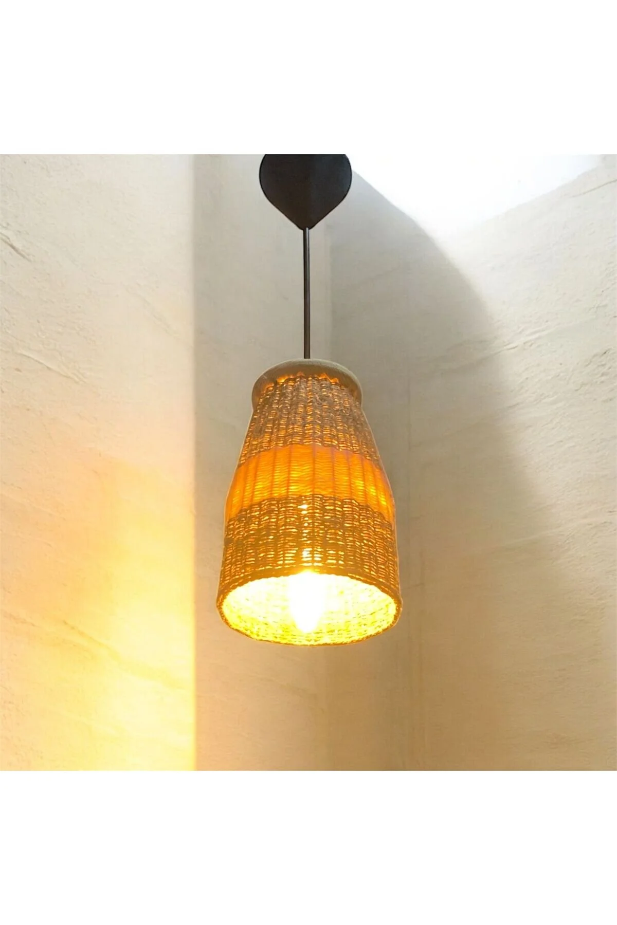 Çöp Siş Keten İpli Sarkık Avize Ahşap