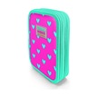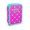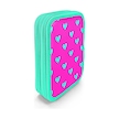 Coral High Kids Neon Pembe Su Yeşili Kalp Desenli Çift Katlı Kalem Çanta 11133 Pembe