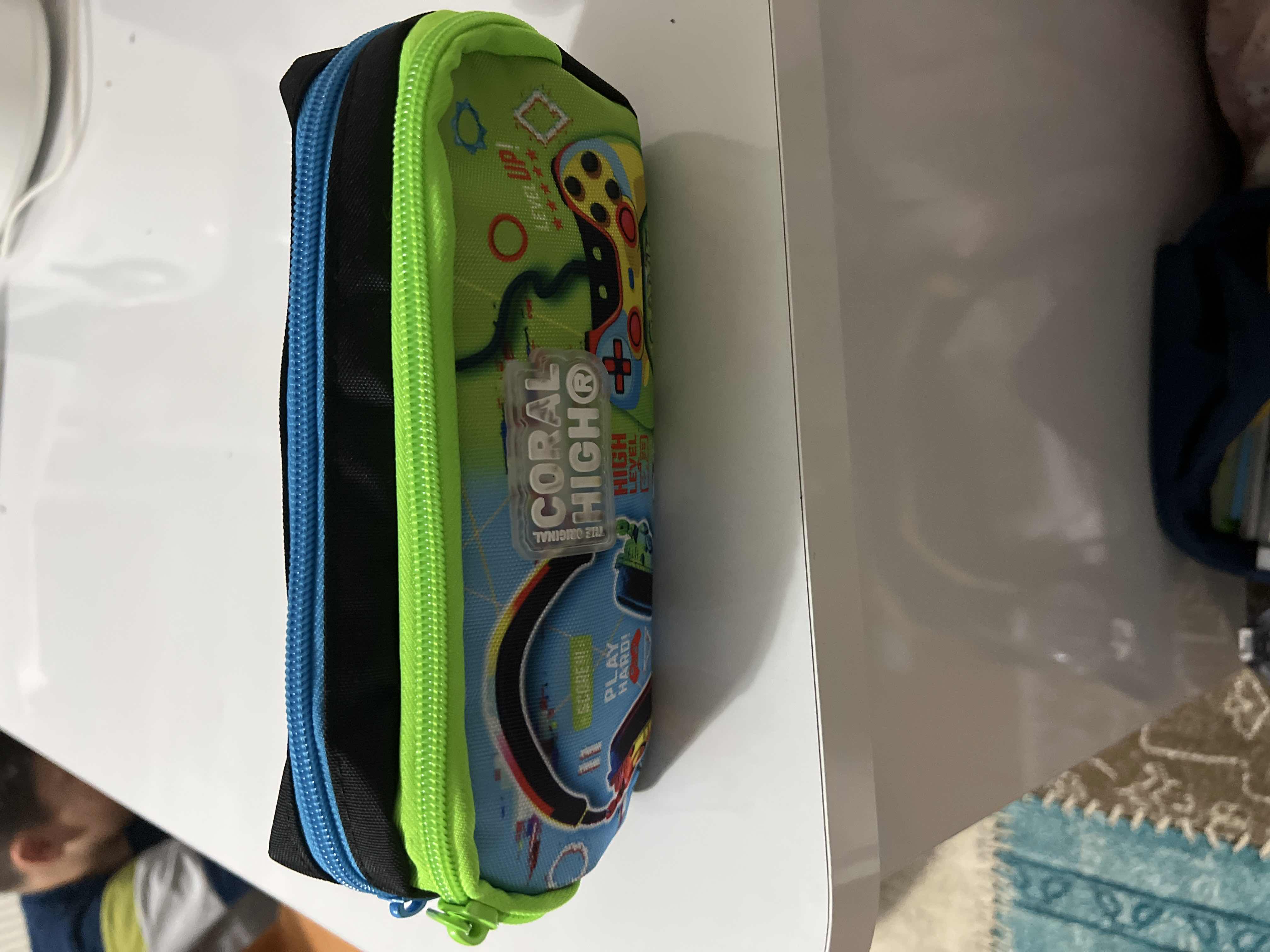 Coral High Kids Siyah Fosforlu Yeşil Kulaklık Game Desenli İki Bölmeli Kalem Çantası 12077