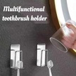 Cordial 2'li Paslanmaz Çelik Diş Fırçası Askısı - Vidalısız Montaj, Banyo Aksesuarı Gümüşi