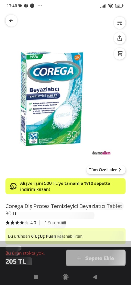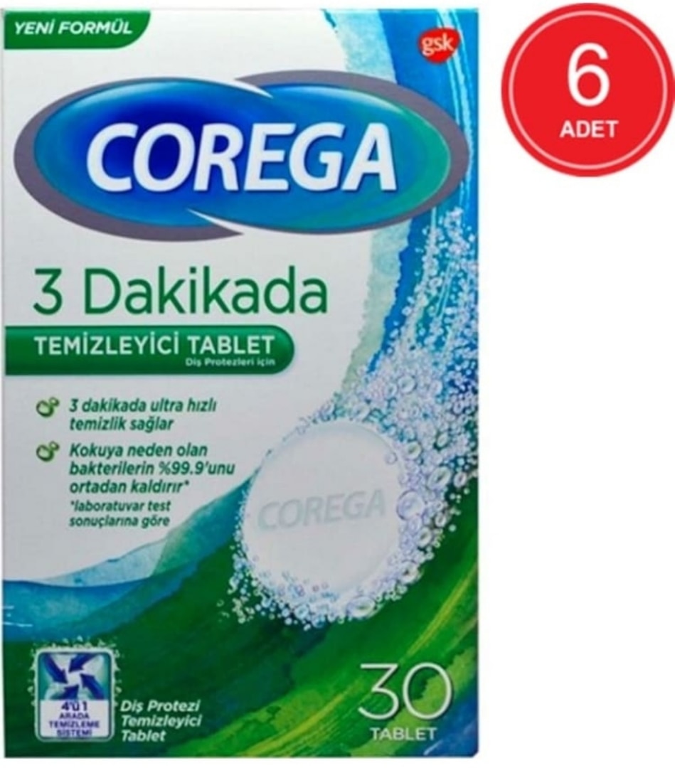 Corega 3 Dakikada Protez Temizleyici Tablet 30'lu x 6 Paket
