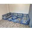 Coton Şark Köşesi Yörük Desenli Lüks Minder Takımı Konsept Mavi 18 Parça Mavi