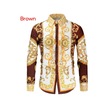 Cozy Up Erkek Casual Slim Fit Uzun Kollu Erkek Baskı Gömlek Kahverengi
