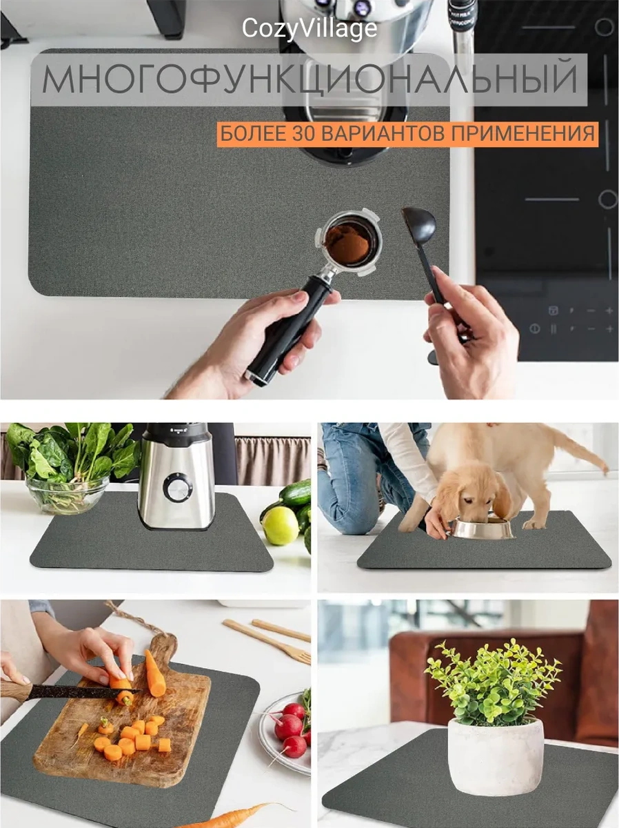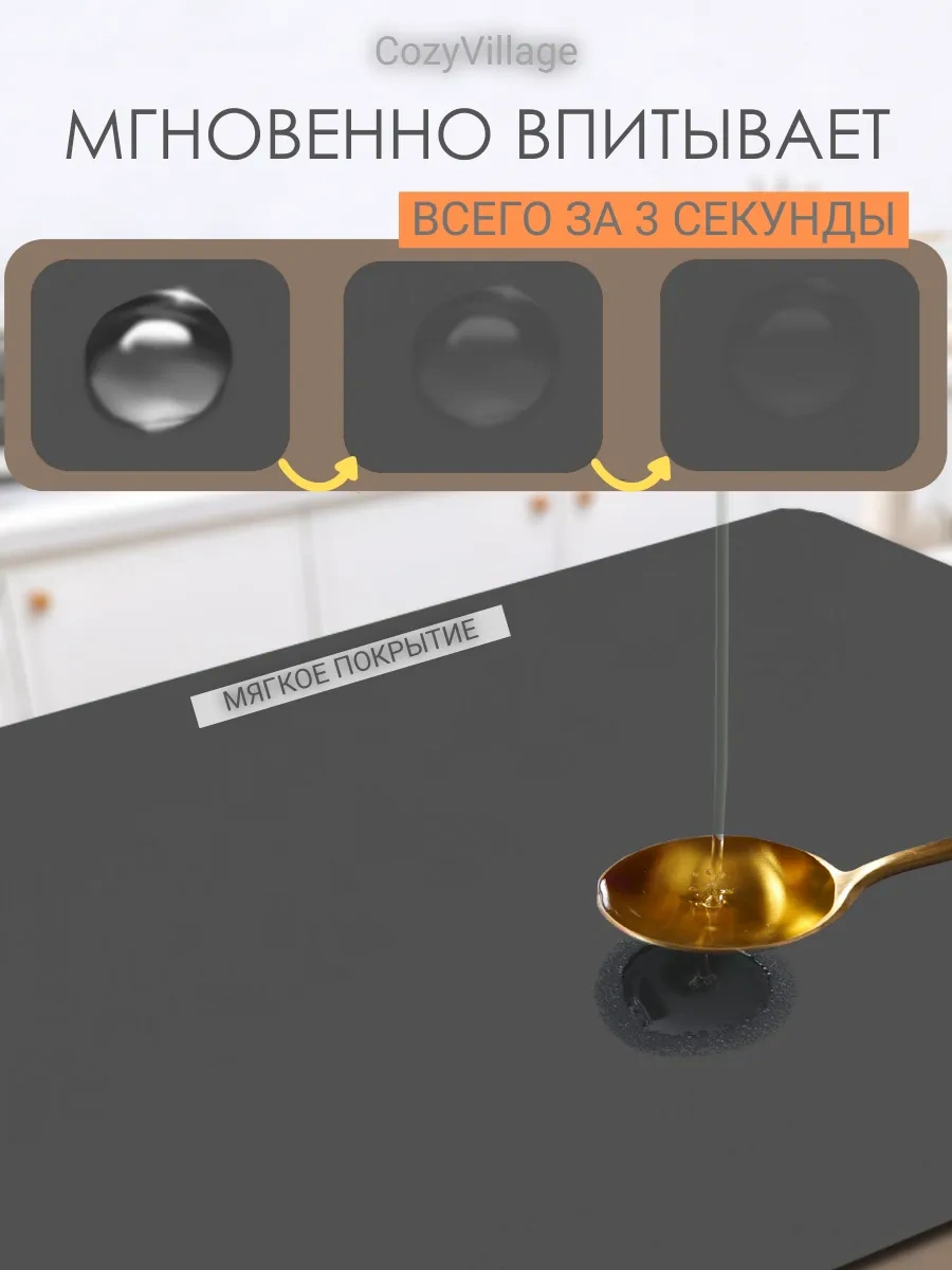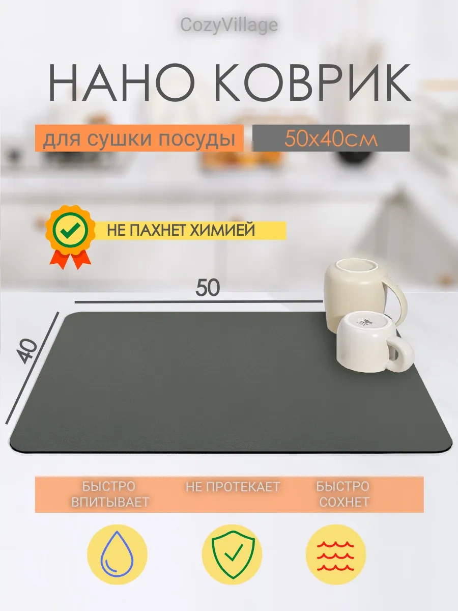 Cozy Village Emici Bulaşık Kurutma Matı 50x40cm 183602805 Koyu Gri