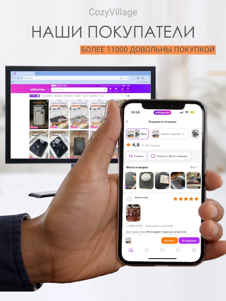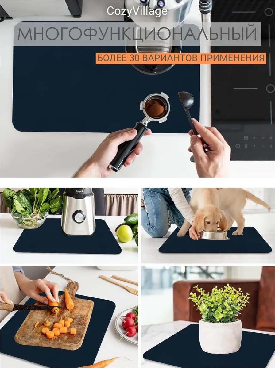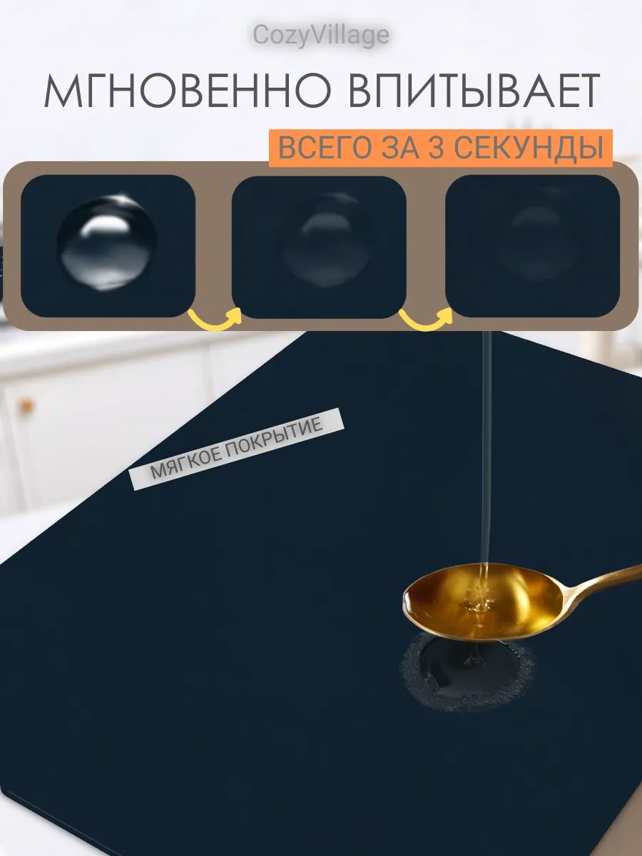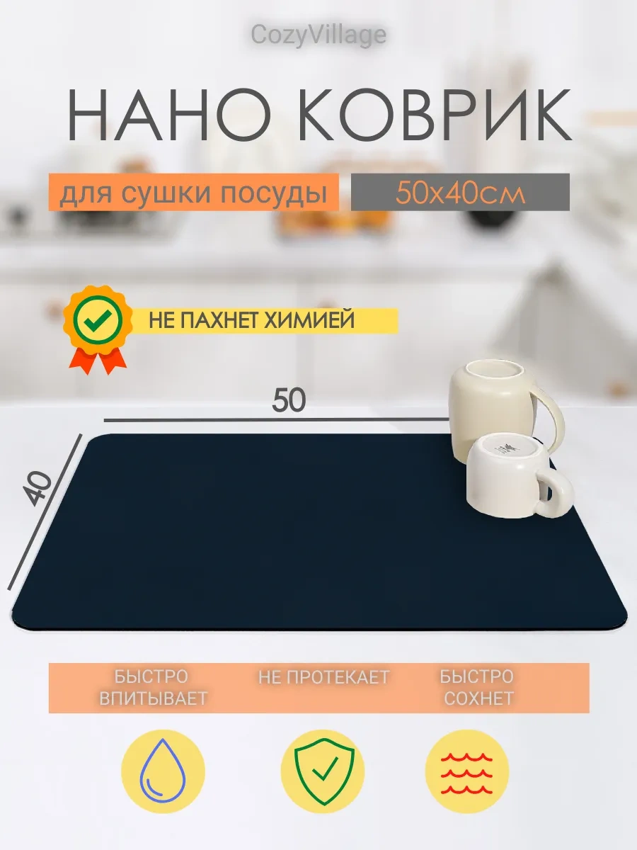Cozy Village Emici Bulaşık Kurutma Paspası 50x40cm 260070930 Siyah