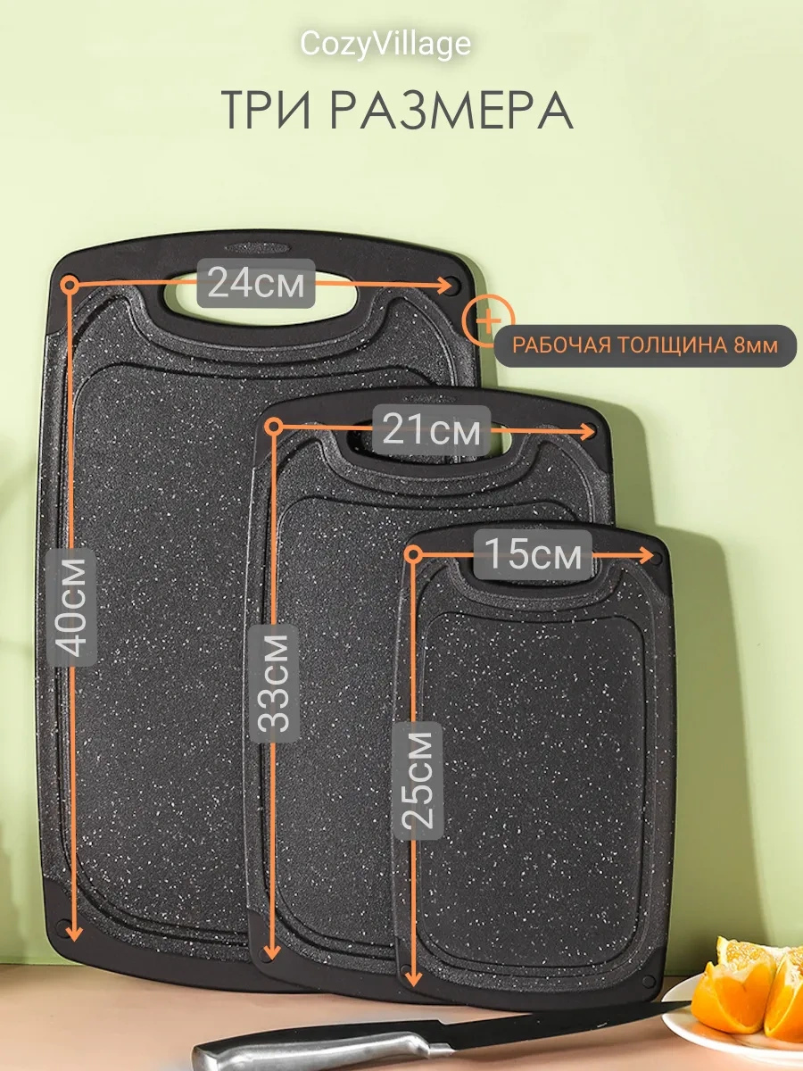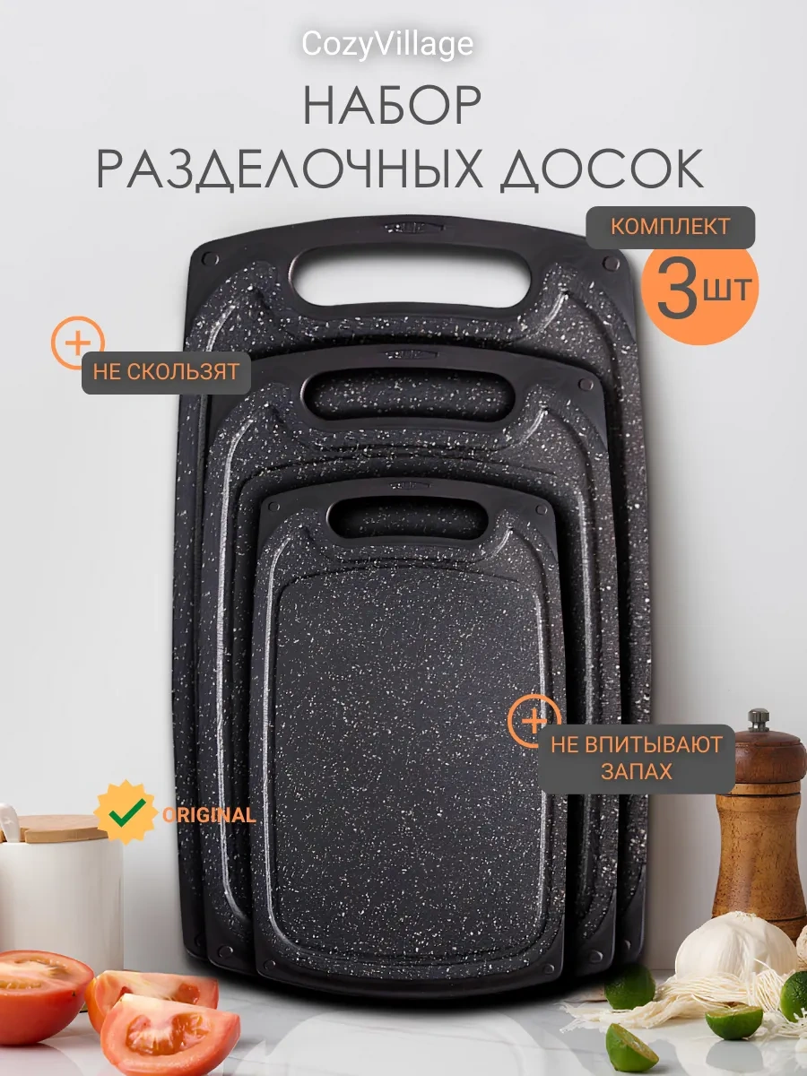 Cozy Village Kesmek Ve Doğrama Tahtası 3'lü Set 258627469 Siyah