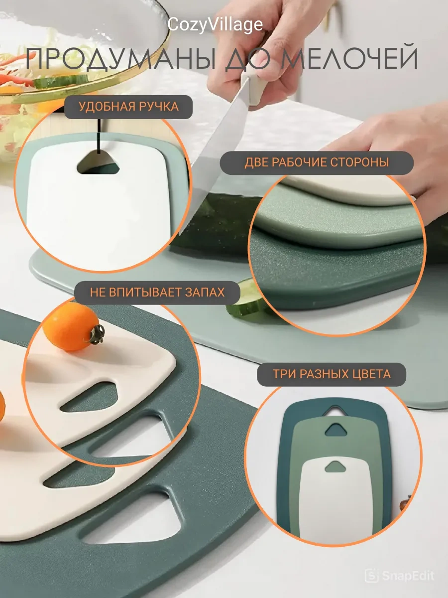 Cozy Village Kesmek Ve Doğrama Tahtası 3'lü Set 413454098 Beyaz