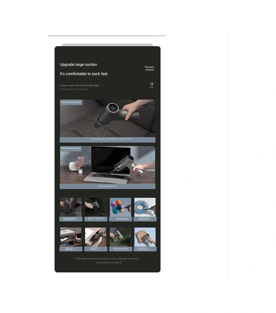 Crackedice Taşınabilir Araba Elektrikli Süpürgesi 11000pa Güçlü Emiş Araba Masaüstü-b