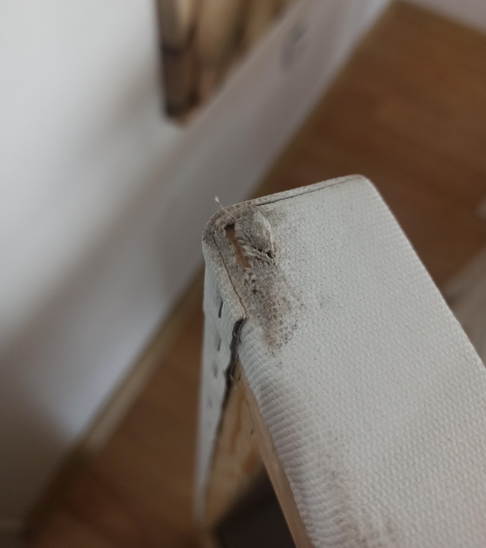 Tuvalın bezle birleşimdeki yerde kasnak acılı değil resim yaparken bez boyayı emince köşeden cıta iz bırakıyor