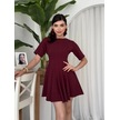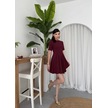Madonna Yaka Dar Kalıp Uzun Kollu Elbise Bordo