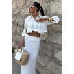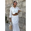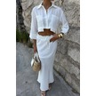 Crop Gömlekli Ve Eteği Büzgülü Tasarım Takım 10201 Beyaz