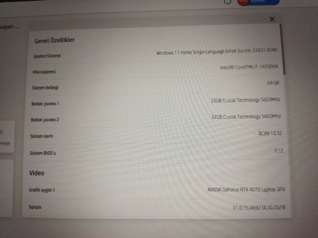 kisa bir zaman once satinamis oldugum HP Victus 16-R1015NT Intel Core i7-14700HX 16GB RAM 1TB SSD 8GB NVIDIA GeForce RTX4070 16.1 inç FHD 144Hz Windows 11 Home dizüstü bilgisayarımin yetersiz kalan ram kapasitesini artırmak için uzun bir arastirma sonucu bu magazadan 2 adet satinaldim.Ürunu satinalmadan önce HP destek ile bayağı bir yazisma sureci gecirdim.HP destek yetkilileri dizüstü bilgisayarın max 32 gb ram destegi oldugunu teyit etti.Ben 2x32 GB olarak taktim ve sorunsuz çalışıyor.