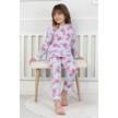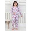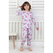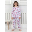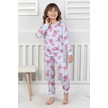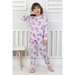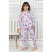Kız Çocuk Desenli Düğmeli Uyku Bantlı Alt Üst Pijama Takım Pembe