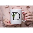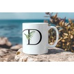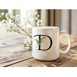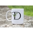 D Harf Zarif Yaprak Desenli Kupa Bardak - Naturel Sade Alfabe Harfli Bardak - Kişiye Özel Hediye Beyaz