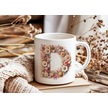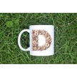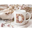 D Harfi Çiçek Desenli Kupa Bardak - Alfabe Harfleri İle Doğal Çiçekli Kupa - Hediye Fikir Beyaz