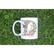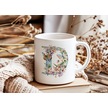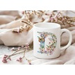 D Harfi Çiçekli Kupa Bardak - Soft Renk Çiçek Ve Kelebek Desenli Zarif Kahve Kupası - Bohem Beyaz