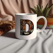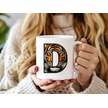 D Harfi Kaplan Figürlü Nakış Desenli Kupa Bardak - Kişiye Özel Vahşi Hayvan Desenli Kupa - Hediye Beyaz