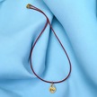 D Harfine Özel Kalp Figürlü 14 Ayar Altın Plakalı Kırmızı Bağlıklı Hediyelik Kolye-633harf D