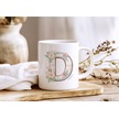 D Harfli Çiçek Desenli Kupa Bardak - Ekose Desenli Yeşil Pembe Desenli Tasarım - Kişiye Özel Hediye Beyaz
