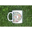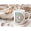 D Harfli Pastel Çiçek Desenli Kahve Kupası - Kişiye Özel Çiçekler Koleksiyonu Bardak - Hediye Beyaz