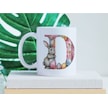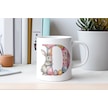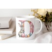 D Harfli Tavşan Kupa - Patchwork / Yamalı Desenli İsme Özel Kupa - Pastel Vintage Tarz Hediyelik Beyaz