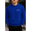 Dağ Baskılı Bisiklet Yaka Sweatshirt Saks Mavisi