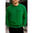 Dağ Baskılı Bisiklet Yaka Sweatshirt Yeşil