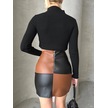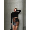 Damalı Deri Etek Siyah Kahve W24648 Siyah