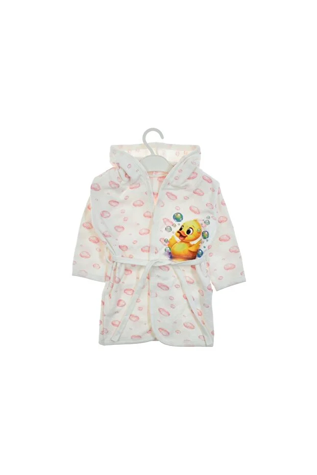 Damla Desen Ördek Baskılı Kız Bebek Bornoz Açık Pembe