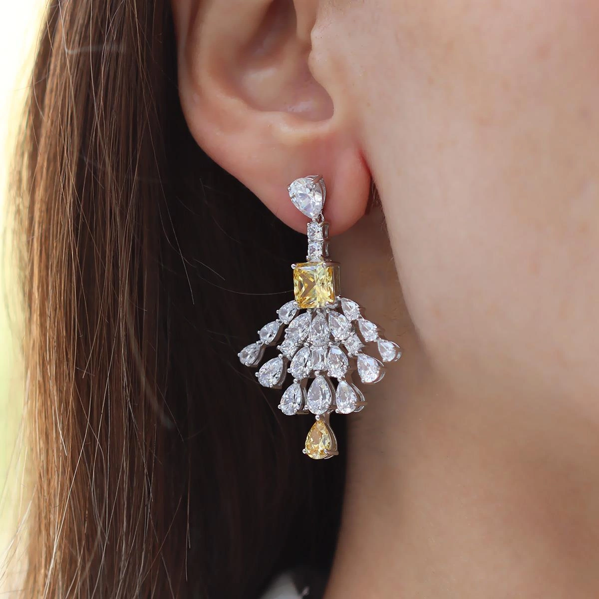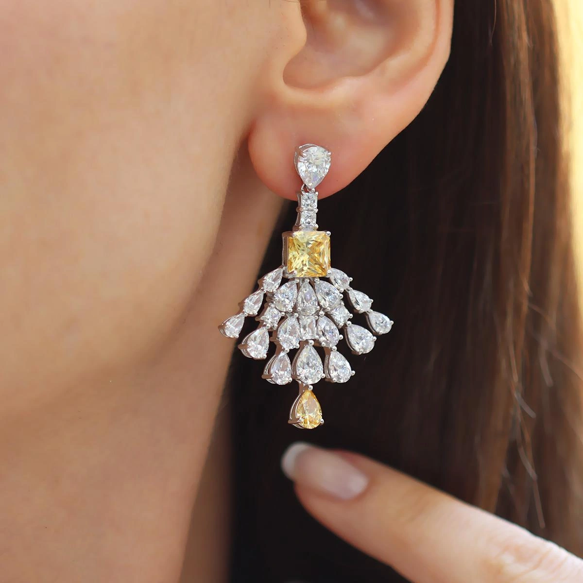 Damla Sitrin Taşlı Işıltı Gümüş Küpe Gümüş