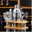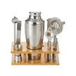 Maoyaya Bambu Standlı 23 Parça Paslanmaz Çelik Gümüş Renkli Kokteyl Çalkalayıcı Seti