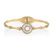 Mineli Pirinç Zirkon Taşlı Yeşil Krem Çiçek Motifli Gold Kadın Kelepçe Çok Renkli
