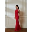 Eteği Volanlı Uzun Elbise Kırık Beyaz