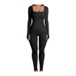 Danrimaoyi Kadın Avrupa Ve Amerika Sonbahar Ve Kış Yeni Varış Dişli Kare Yaka Slim Fit Tulum Siyah