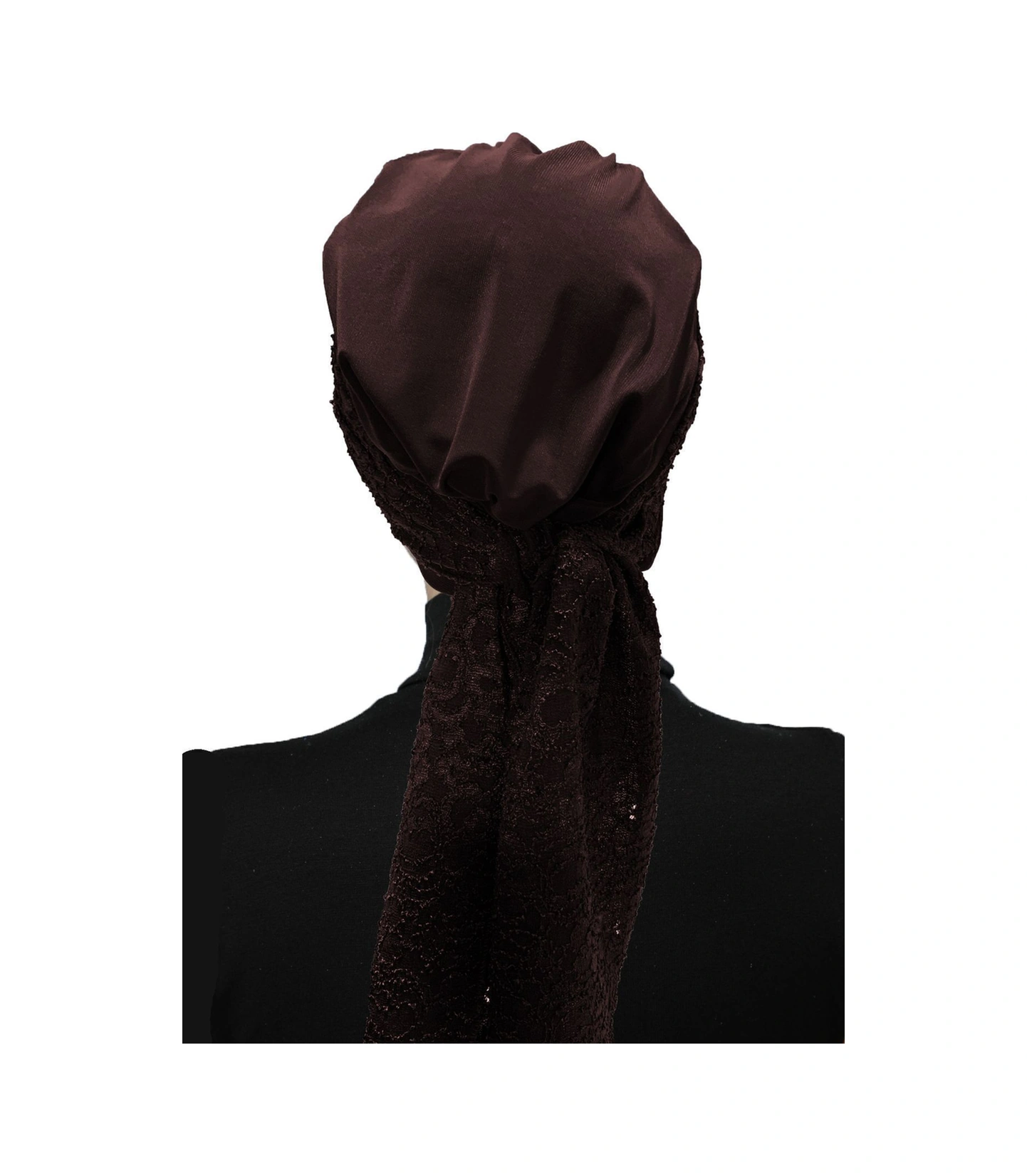 Dantel Bandana Kahve Hazır Türban Tesettür Bone Kahve