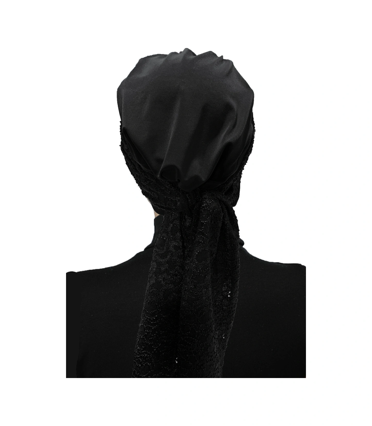 Dantel Bandana Siyah Hazır Türban Tesettür Bone Siyah
