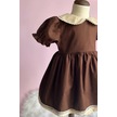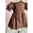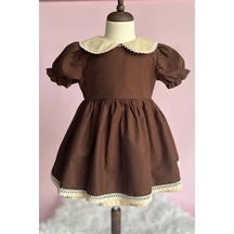 Dantel Detaylı Bebe Yaka Kahve Camel Vintage Kız Çocuk Bebek Bayram Elbise 001