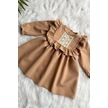 Dantel Detaylı Fırfırlı Camel Sütlü Kahve ve Kız Çocuk Bebek Elbise Kahverengi