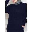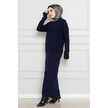 Dantel İşlemeli Jileli Triko Takım-lacivert-4436 Lacivert