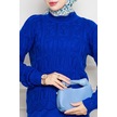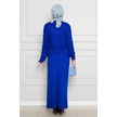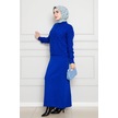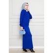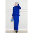 Dantel İşlemeli Jileli Triko Takım-saks Mavi-4433 Saks Mavi