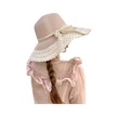 Dantel Şeritli Plaj Hasır Güneş Şapkası 2487 Pembe