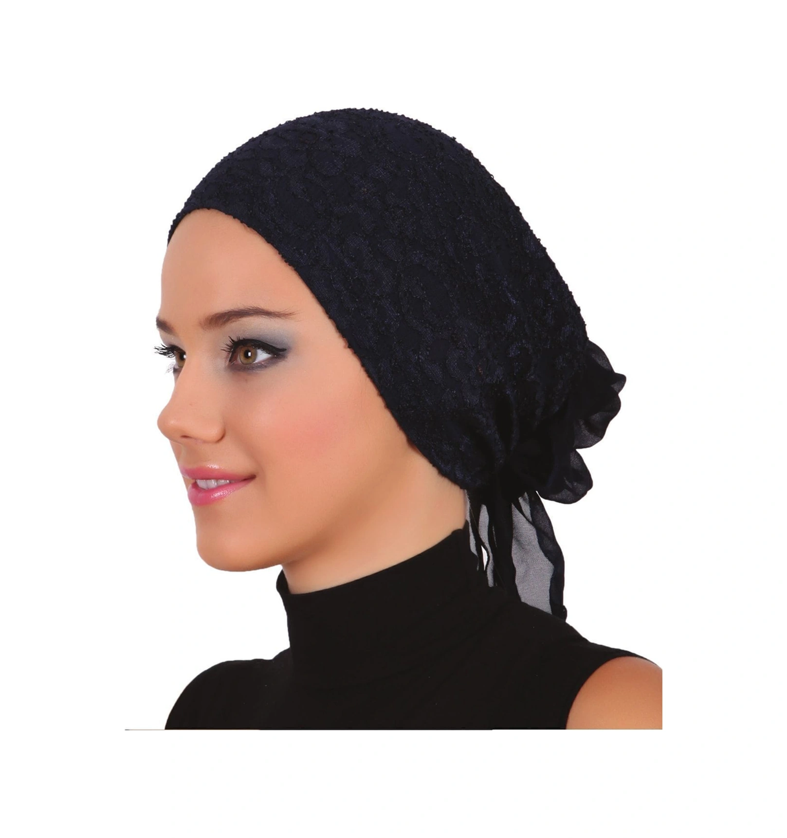Dantel Tüllü Lacivert Hazır Türban Tesettür Bone Lacivert