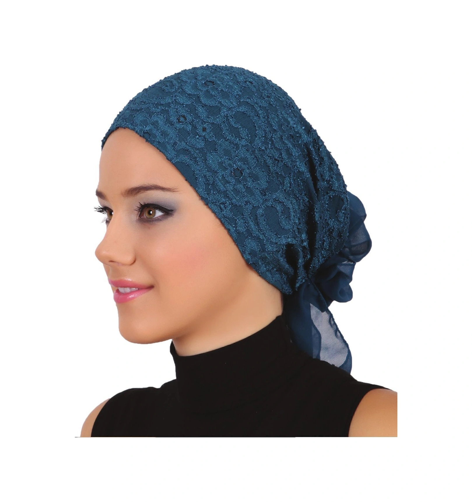 Dantel Tüllü Petrol Hazır Türban Tesettür Bone Petrol