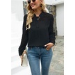 Dantel Uzun Kollu Yaz Yeni Üstler V Yaka Seksi Kadın Siyah
