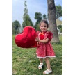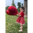Dantel Ve Fırfır Detaylı Çiçekli Kırmızı Kız Çocuk Bebek Elbise 001