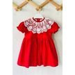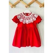 Dantel Yaka Poplin Kırmızı Kız Çocuk Bebek Elbise 001
