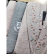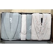 Dantela Premium Soft Nakışlı Aile Bornoz Seti-Yade Pudra Gri Gri - Pudra
